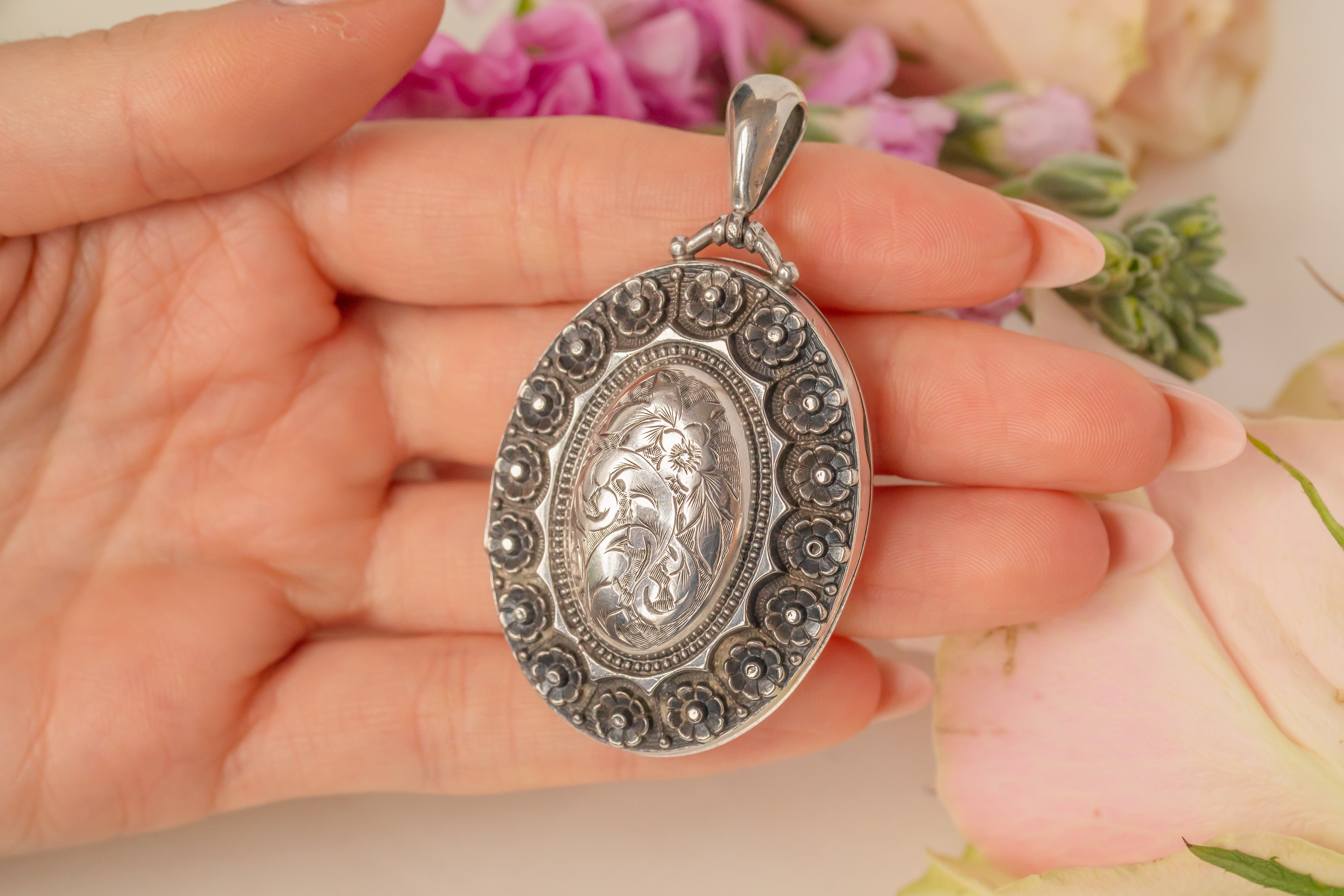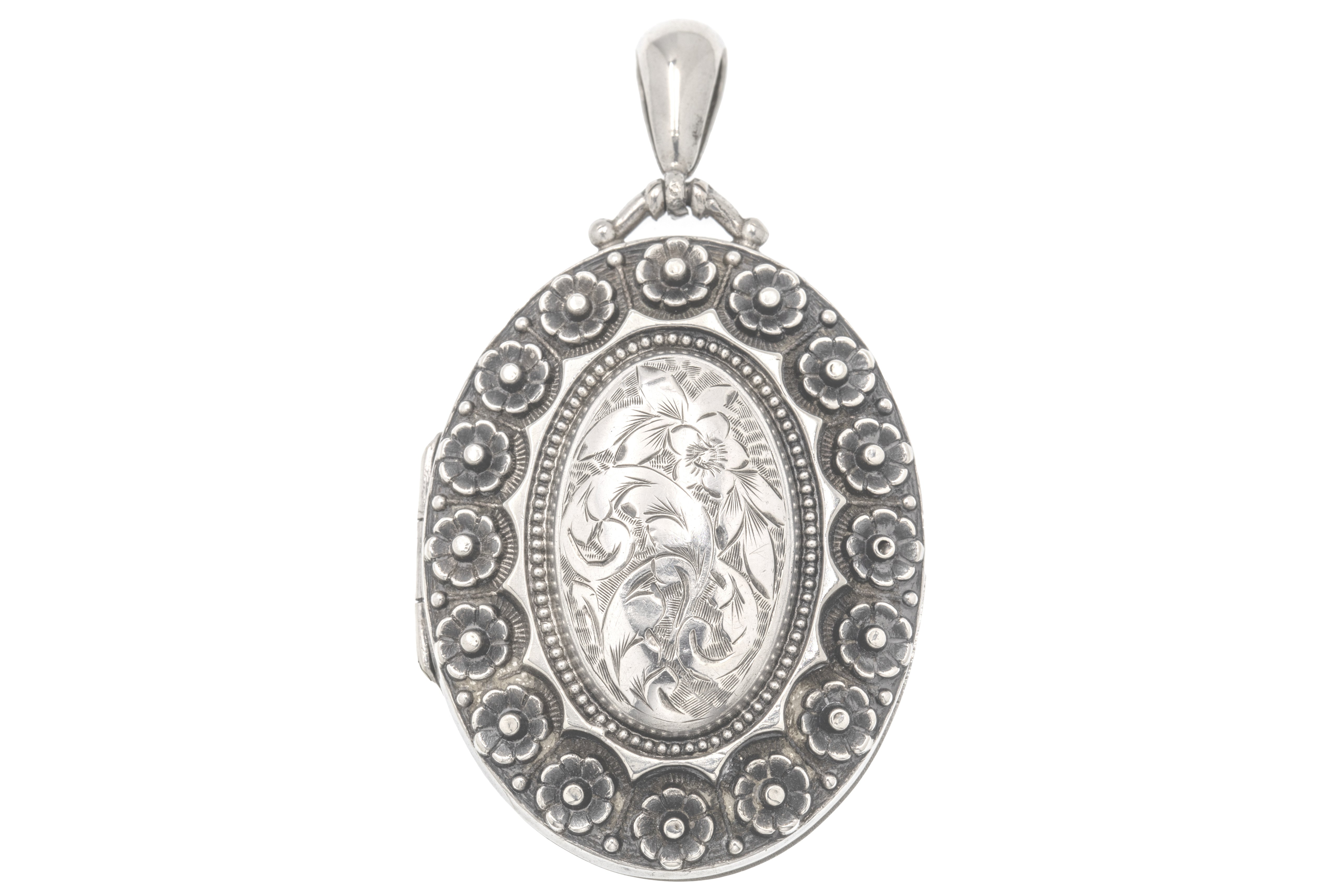 Victorian Aesthetic Sterling Silver Flower Locket, c.1880