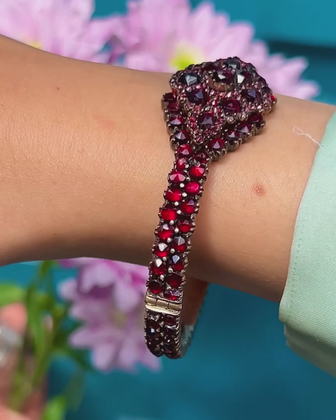 Victorian Bohemian Rose-Cut Garnet Bangle