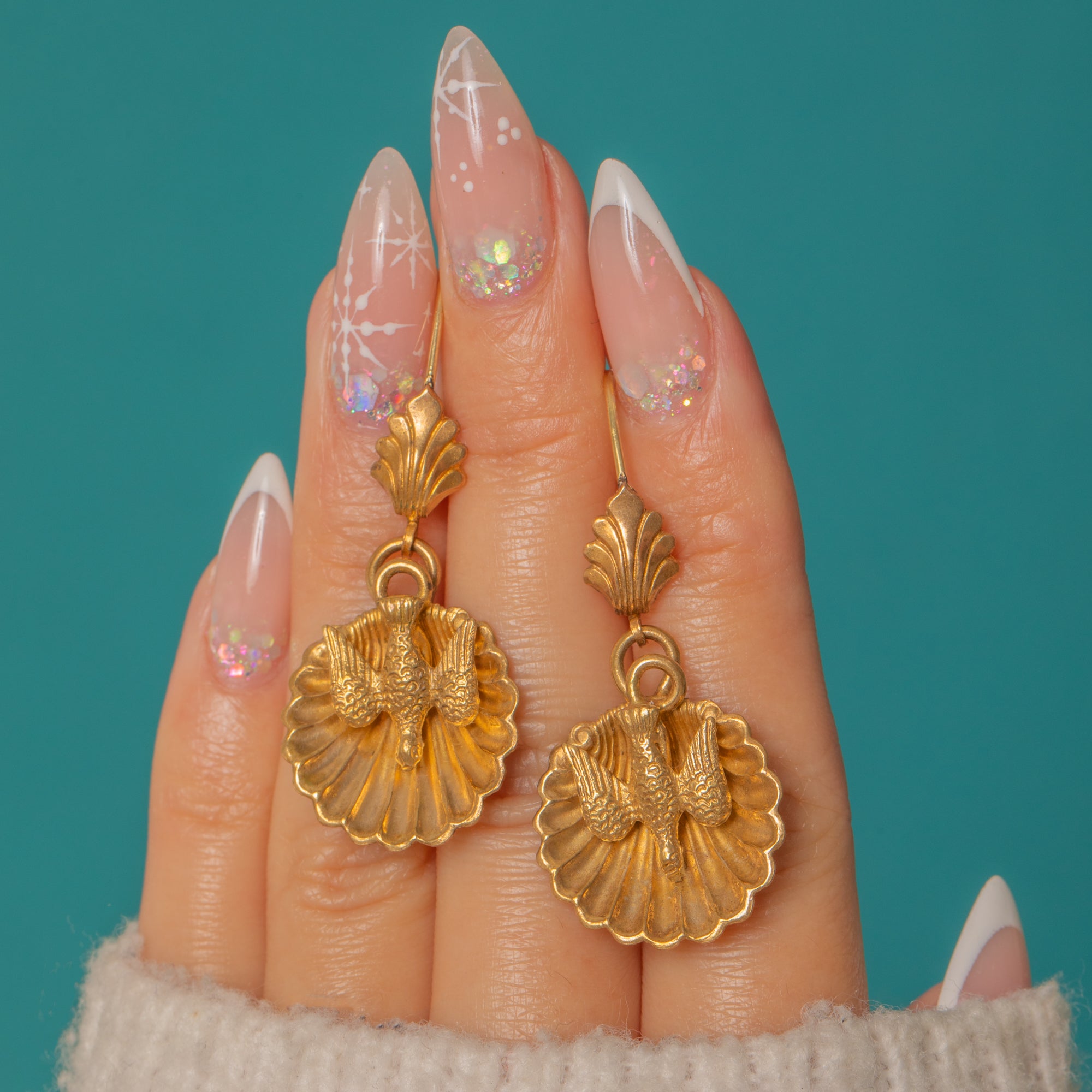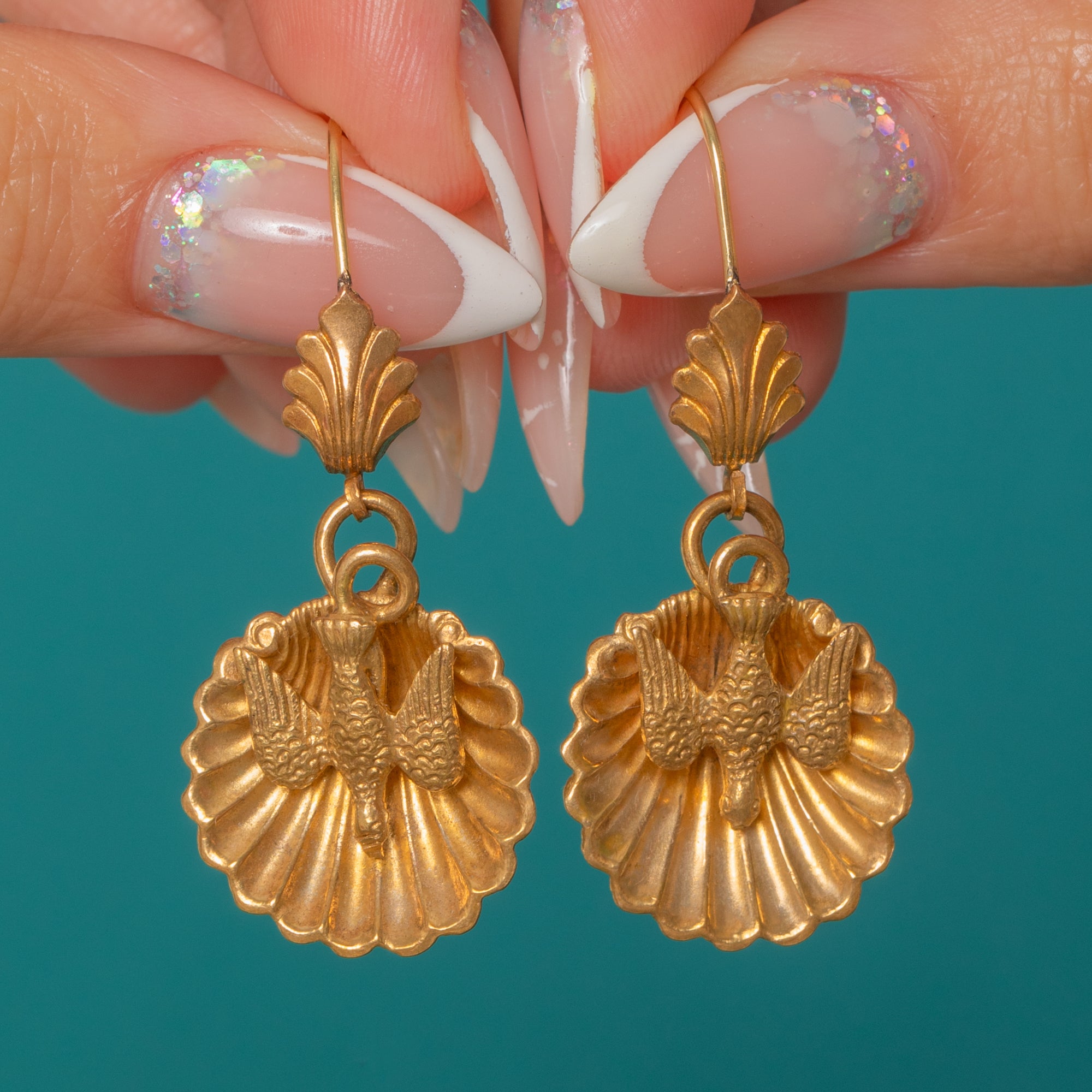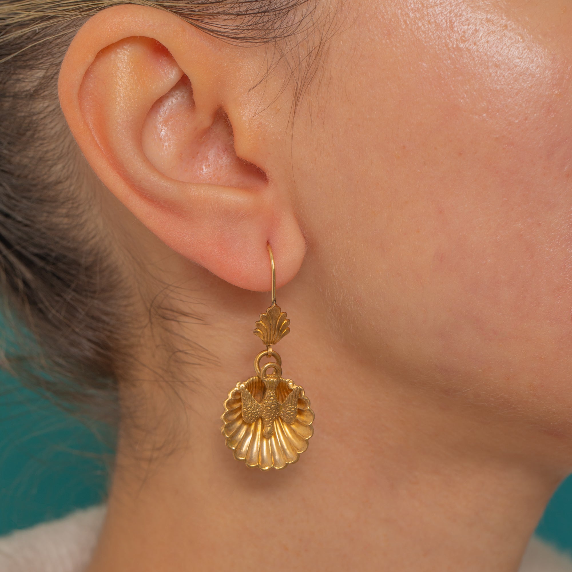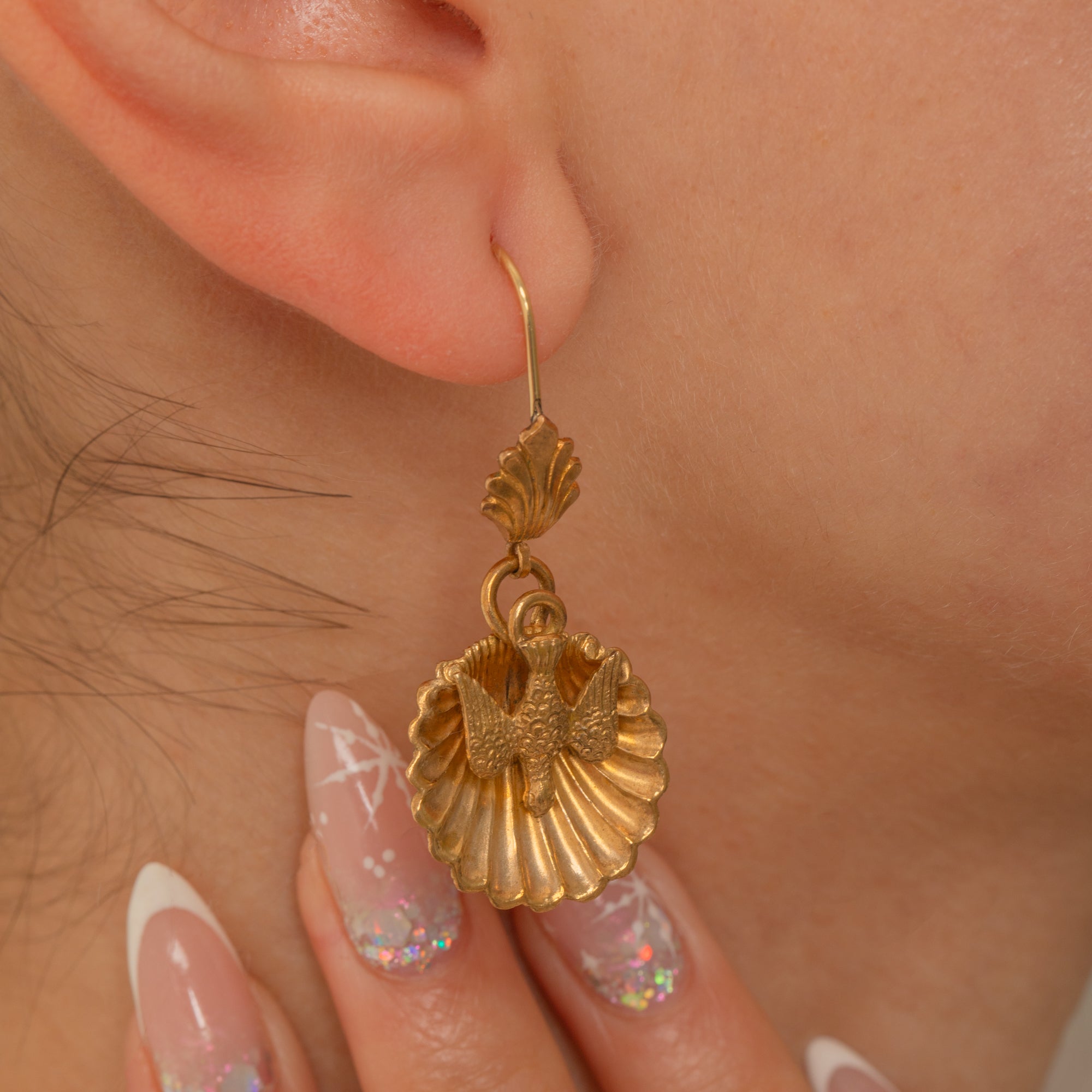 Antique Scallop-Shell Swallow Earrings, 18ct Gold Hooks