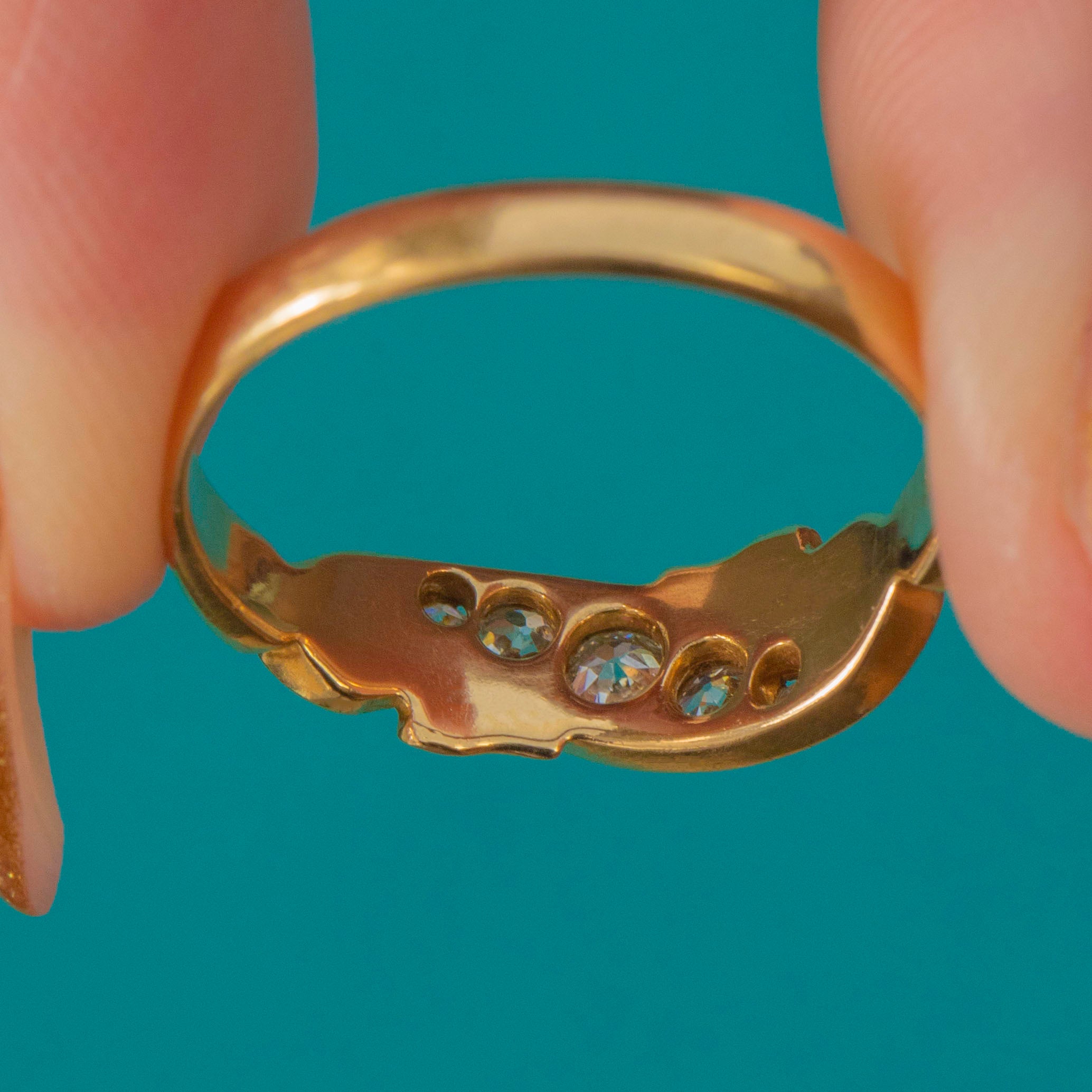 Victorian 18ct Gold Carved Diamond Five Stone Ring 0.25ct c.1900