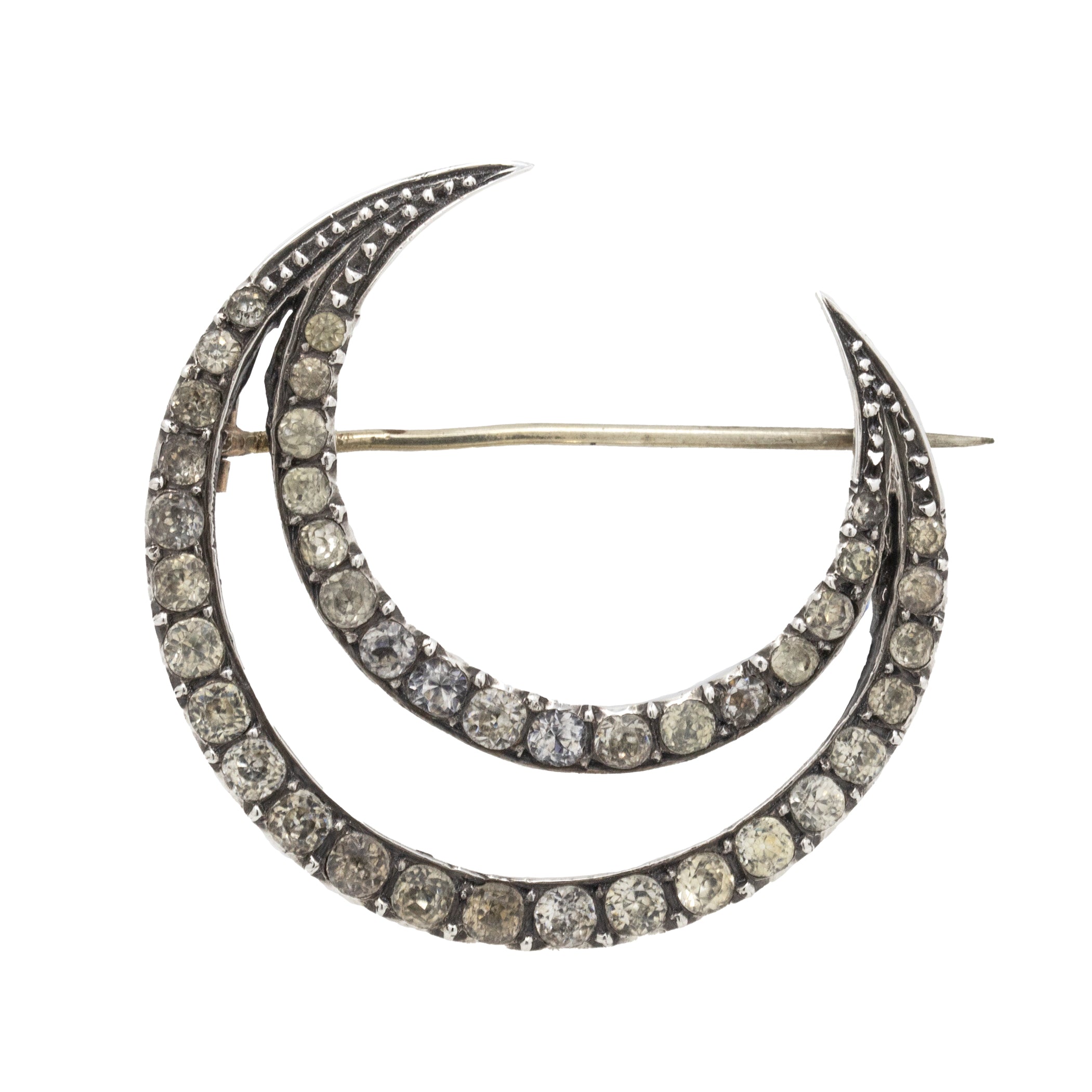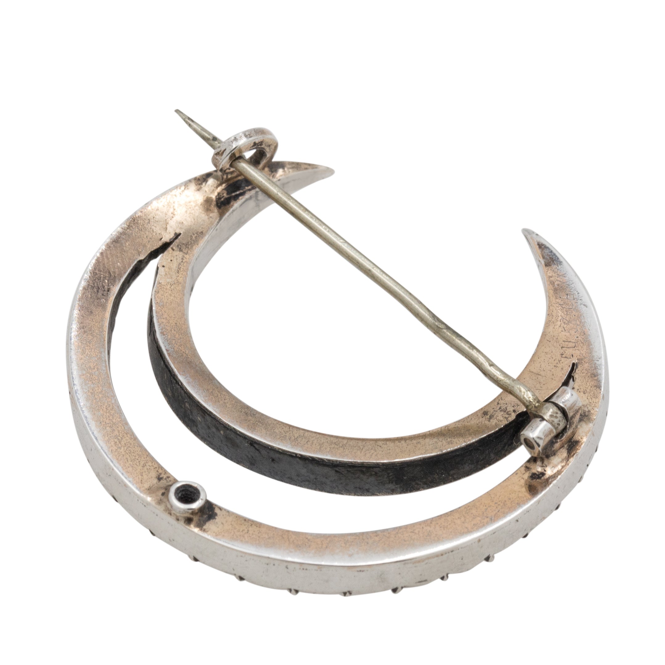 Victorian Silver Paste Double Row Crescent Moon Brooch