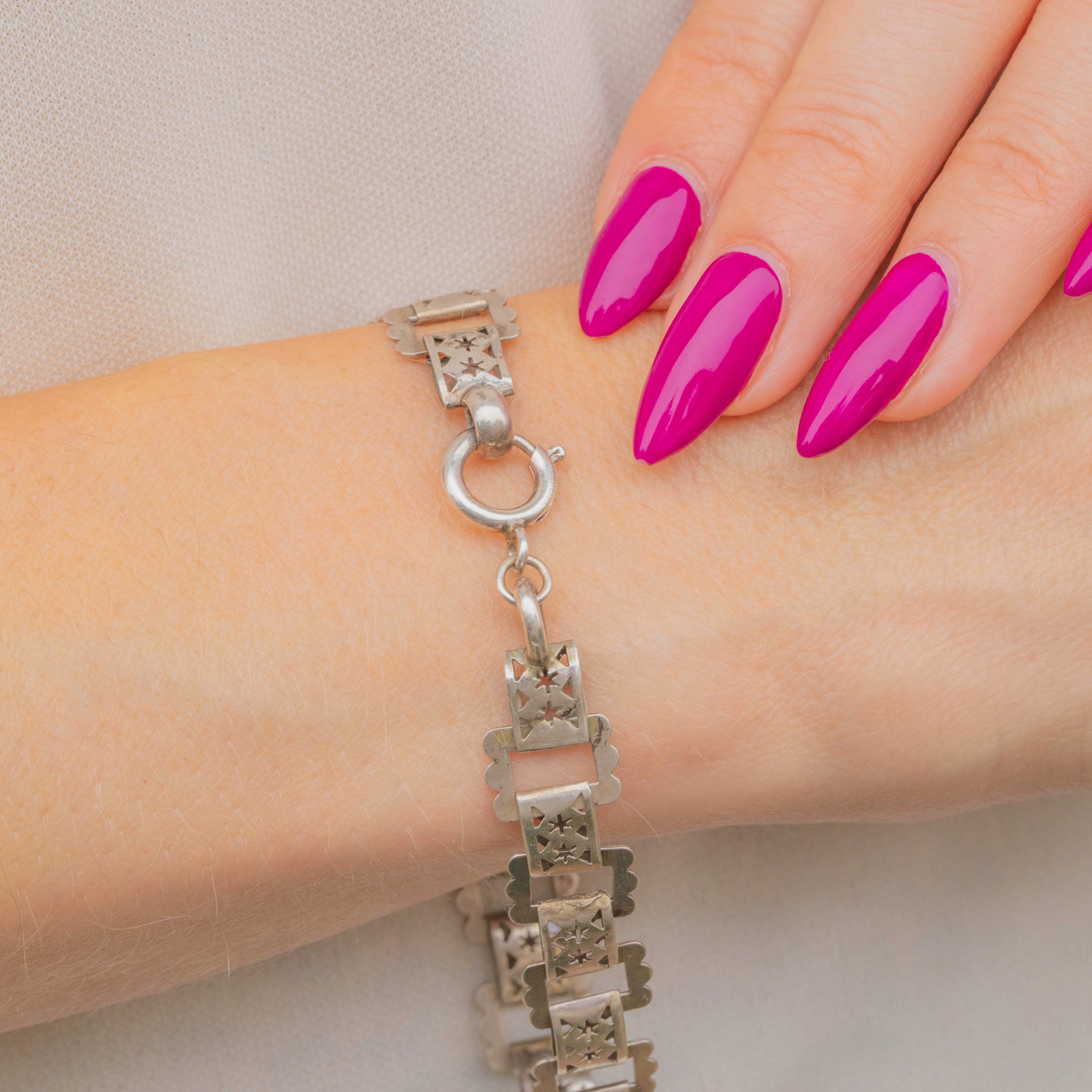 Victorian Silver Pierced Star Link Bracelet