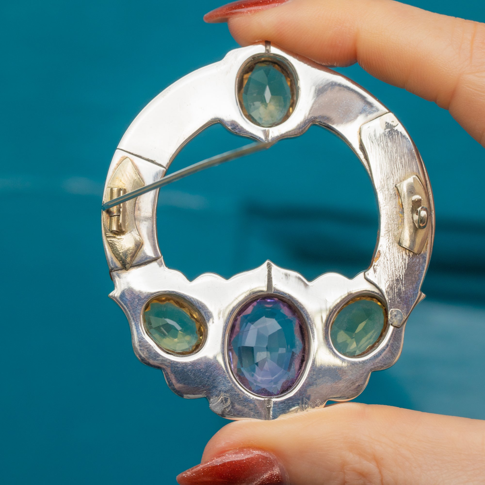 VERY GOOD-EXCELLENT: This Victorian Silver Scottish Agate brooch is in wonderful condition. She is crafted meticulously, with each gemstone securely set. The Amethyst and Citrine stones have some fleabites commensurate with age, however this is difficult to see without a jeweller's loupe. With her pin in perfect working order, you can wear her with the utmost confidence!