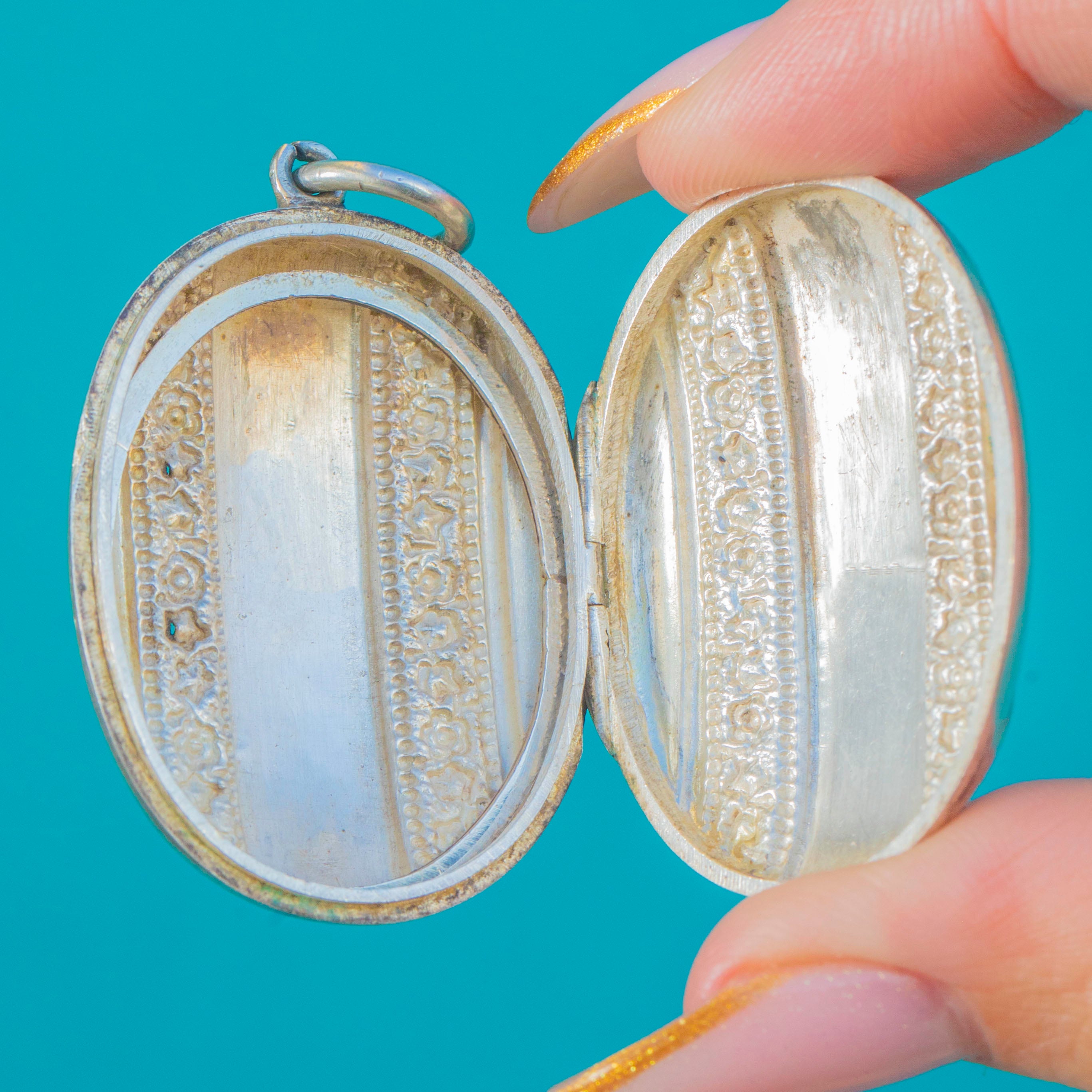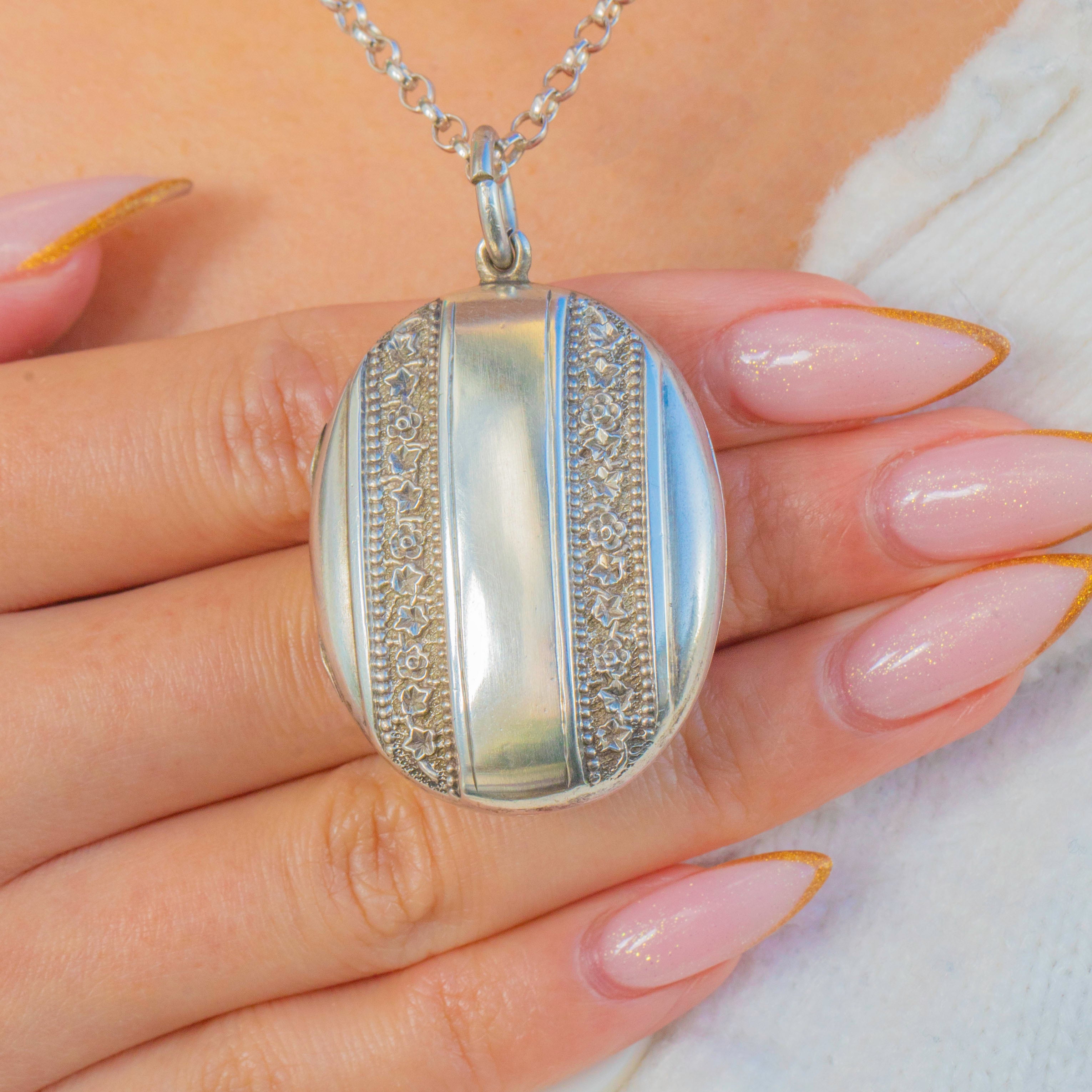 Inside, the locket retains both of its original Sterling Silver frames, ready to hold treasured photographs or keepsakes. A charming, classic piece of 19th-century Silver jewellery with excellent presence and craftsmanship.