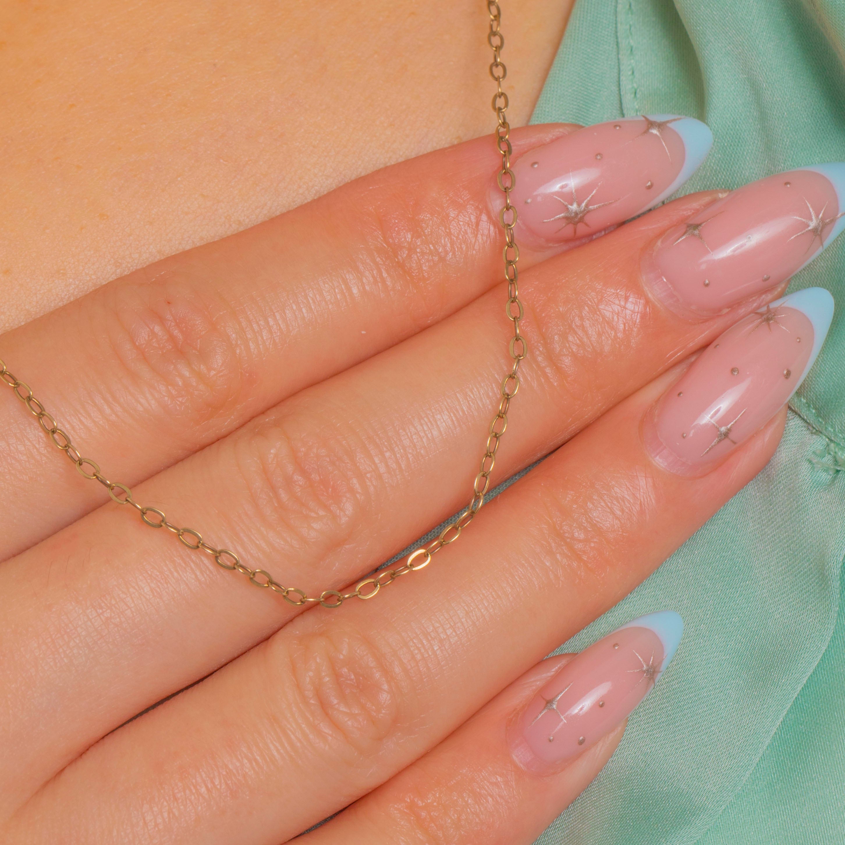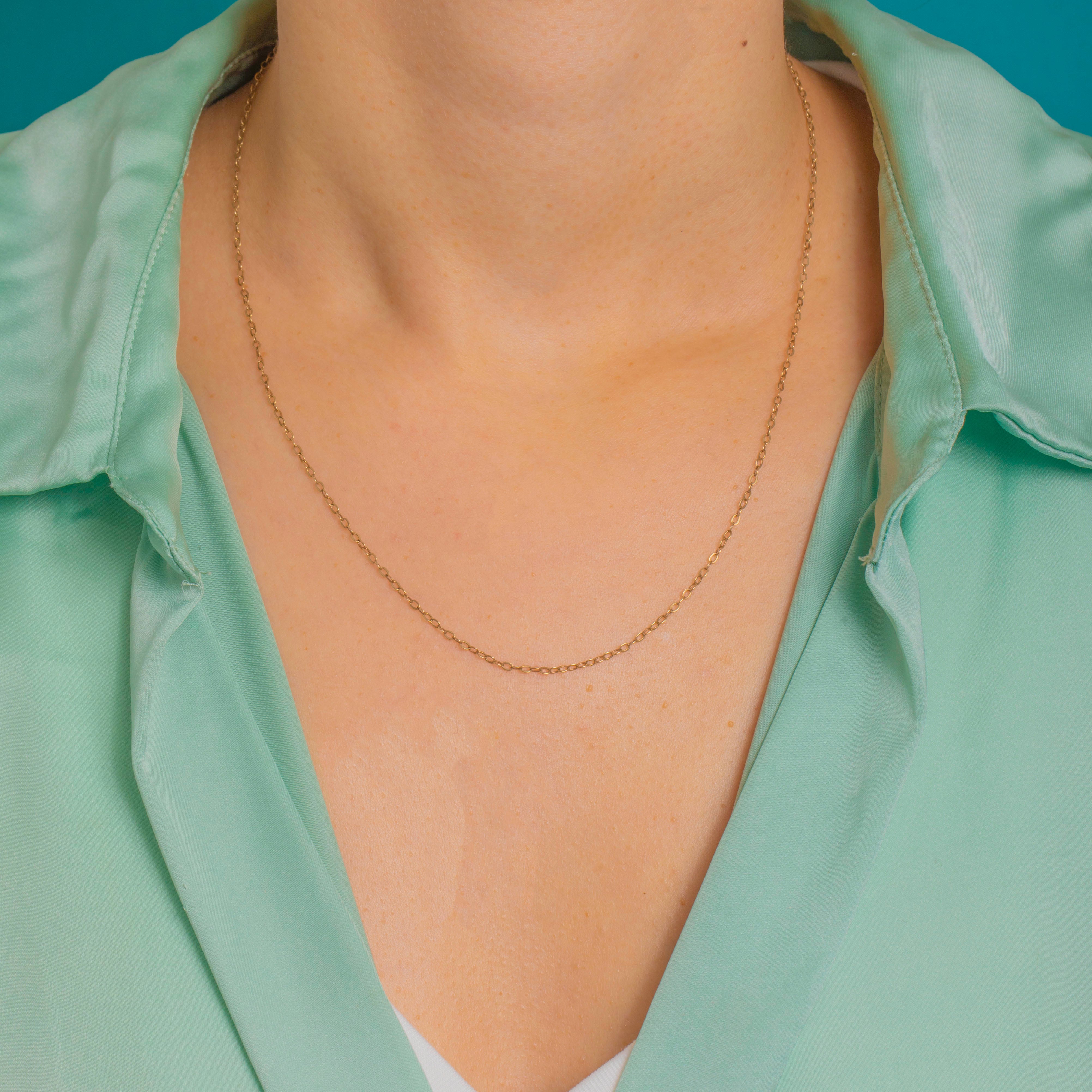 Wear it alone for a subtle glimmer or add your favourite pendant; the delicate profile sits neatly at the collarbone and layers beautifully. A timeless essential you’ll reach for again and again.