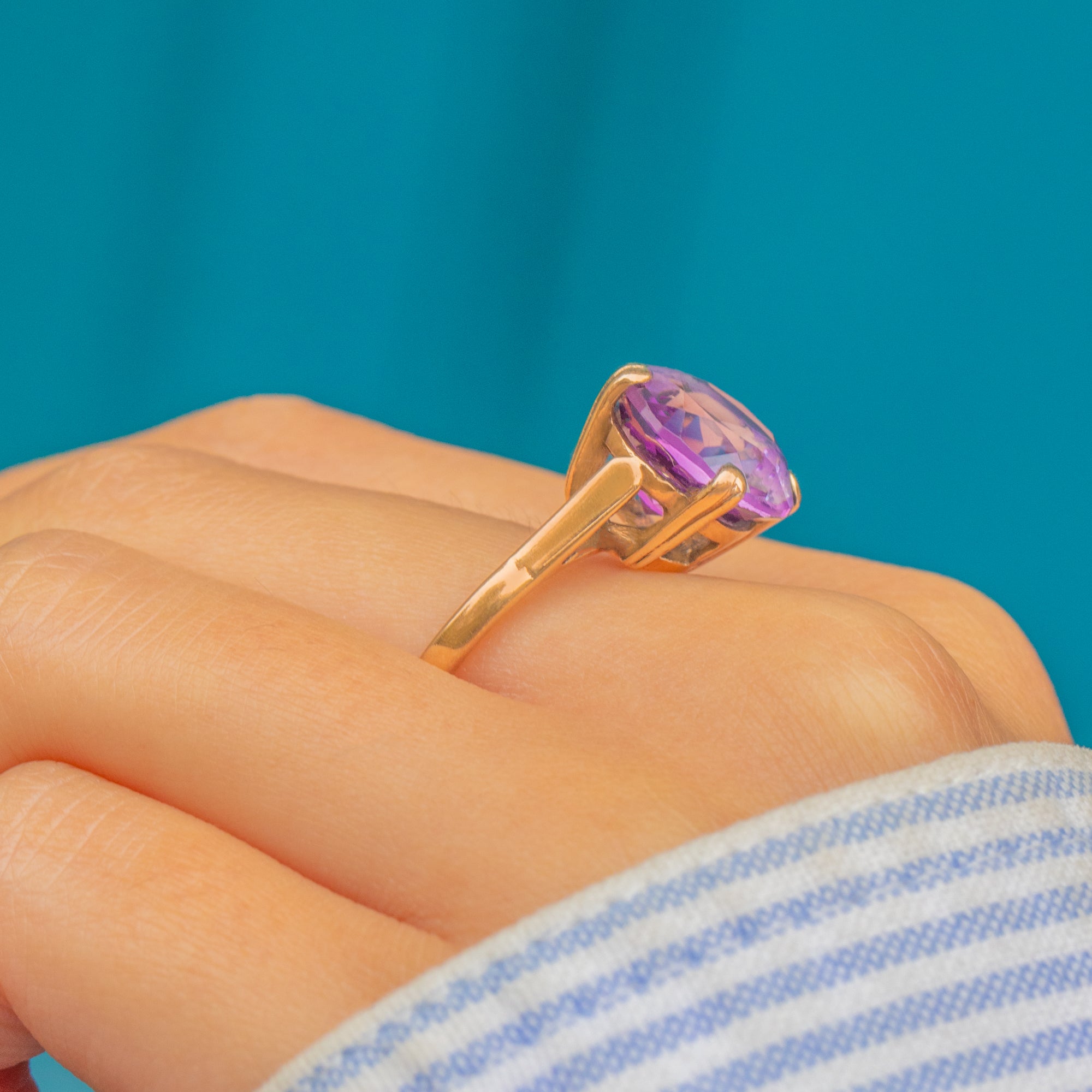 EXCELLENT: The Amethyst is in superb condition with no chips or scratches and retains its strong colour. The Gold band is smooth, with no signs of wear or resizing.