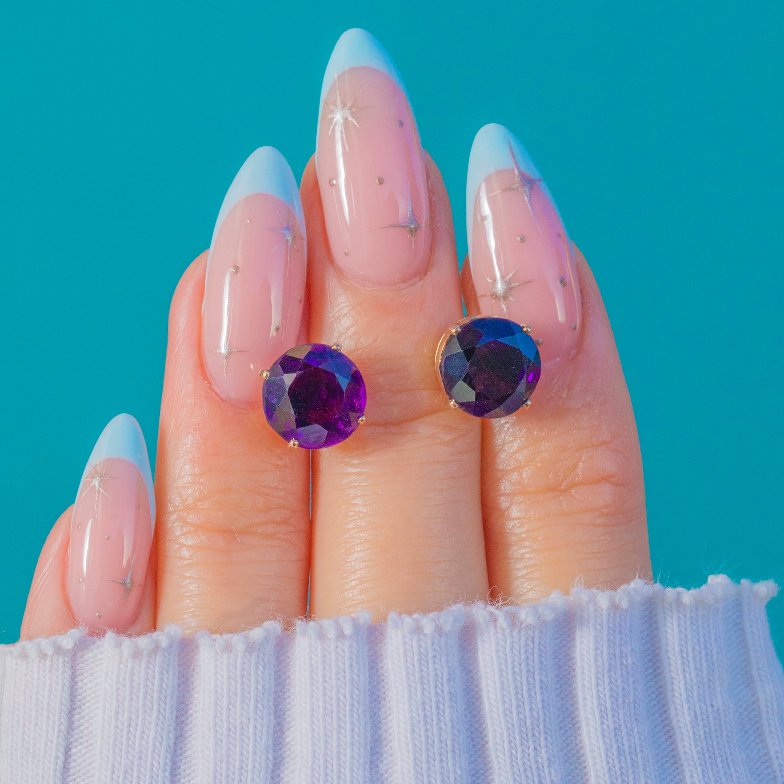 MEASUREMENTS: Amethysts are 8mm in diameter, weighing approx. 3.30ct total.