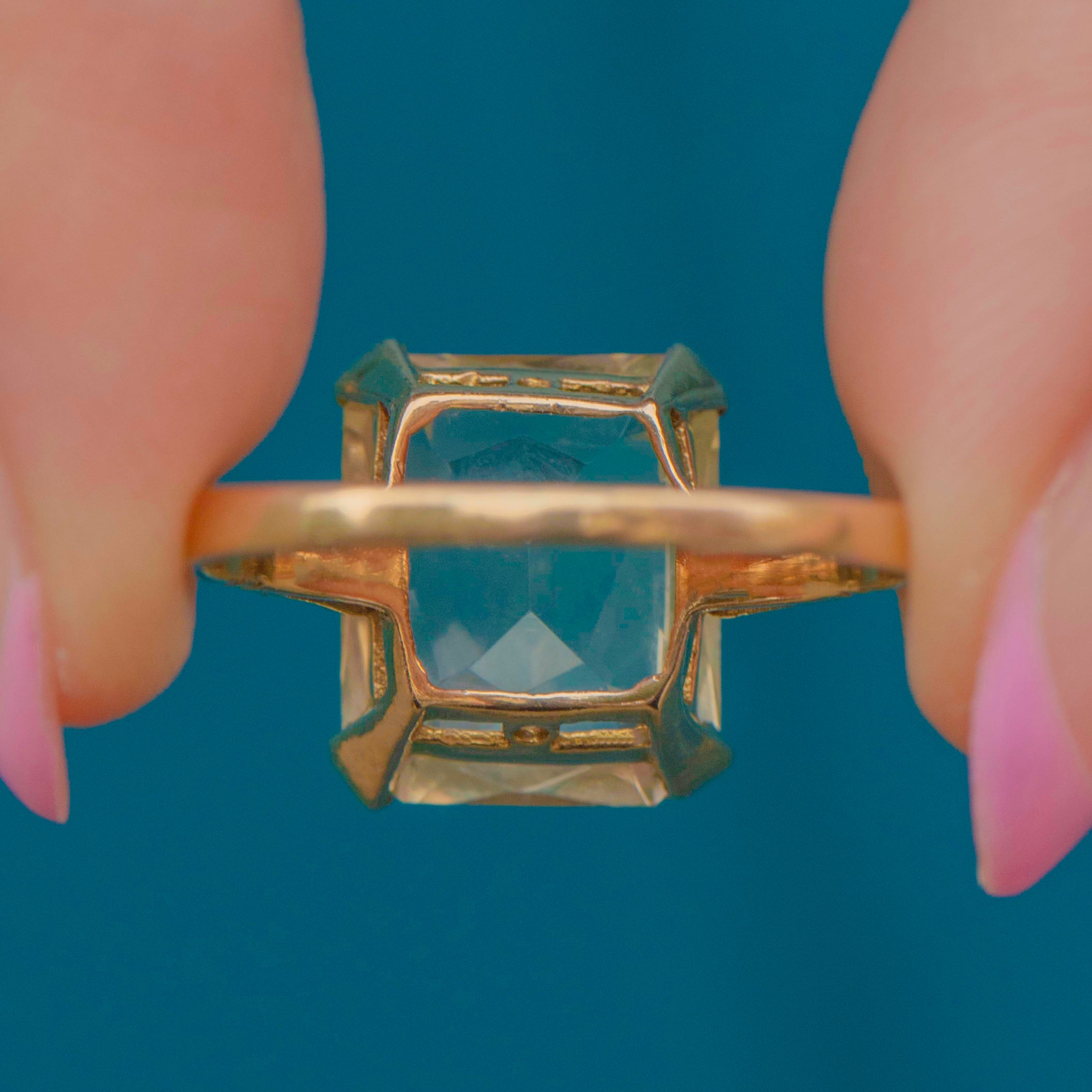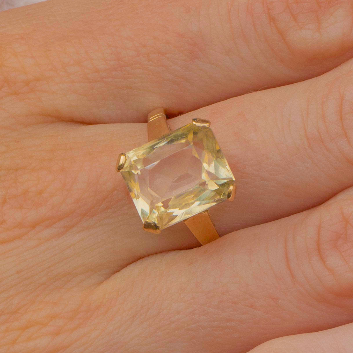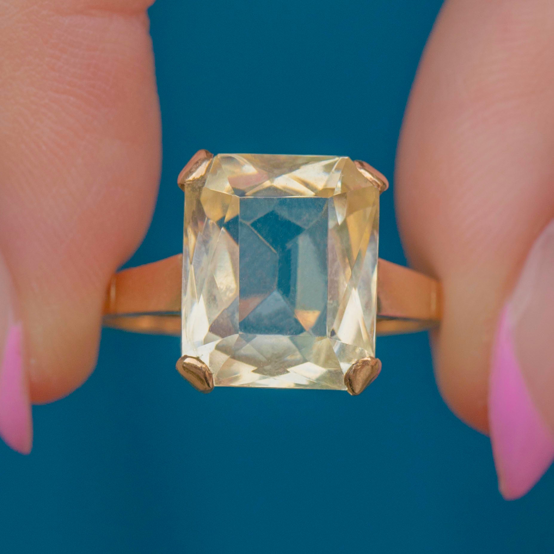 This Vintage 9ct Gold Citrine cocktail ring looks good enough to eat! Swoon over the soft, lemony hues that glisten across the fabulously faceted form of her 4.55ct, taking you back to fond memories of eating lemon sherbets.