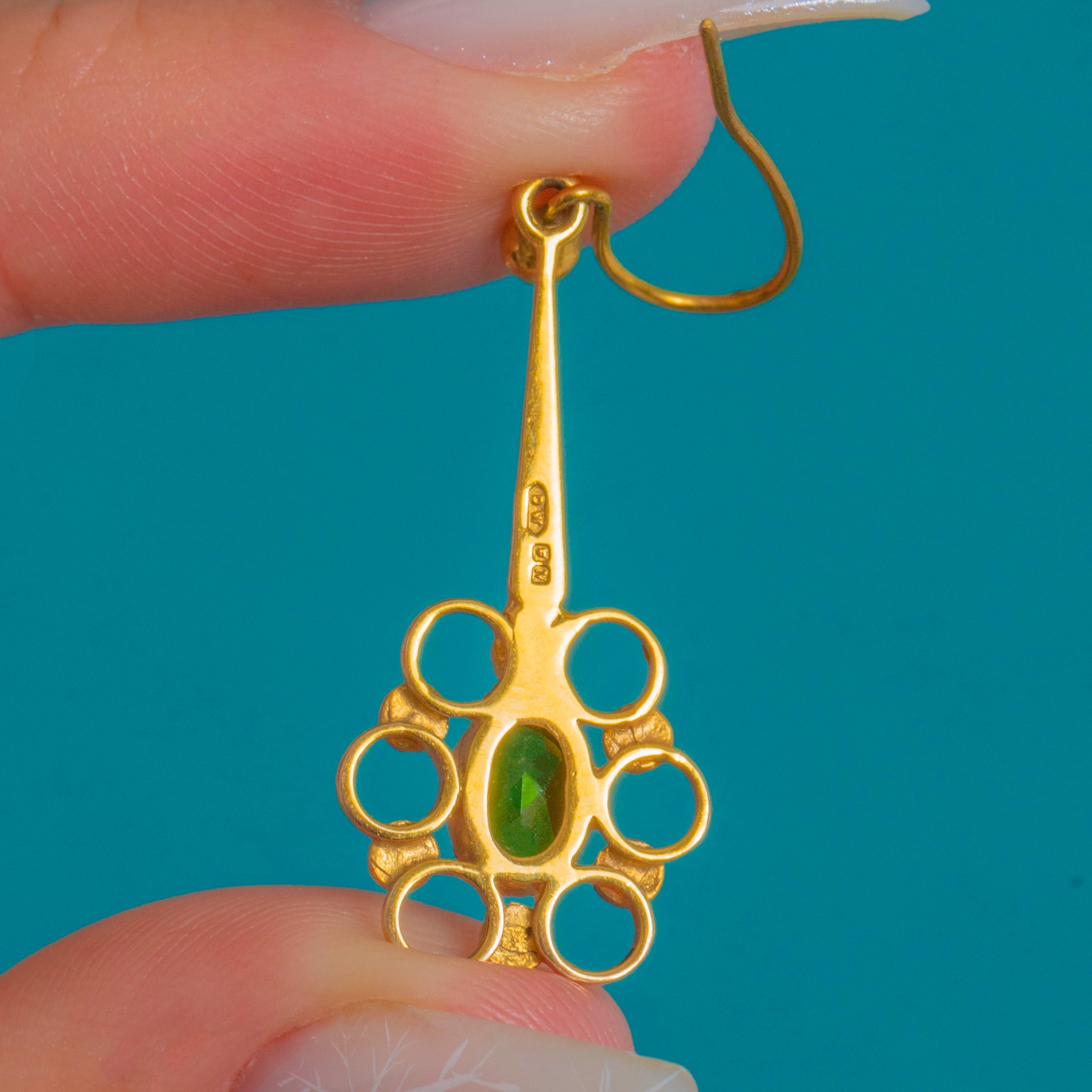 Vintage 9ct Gold Green Tourmaline Pearl Cluster Drop Earrings