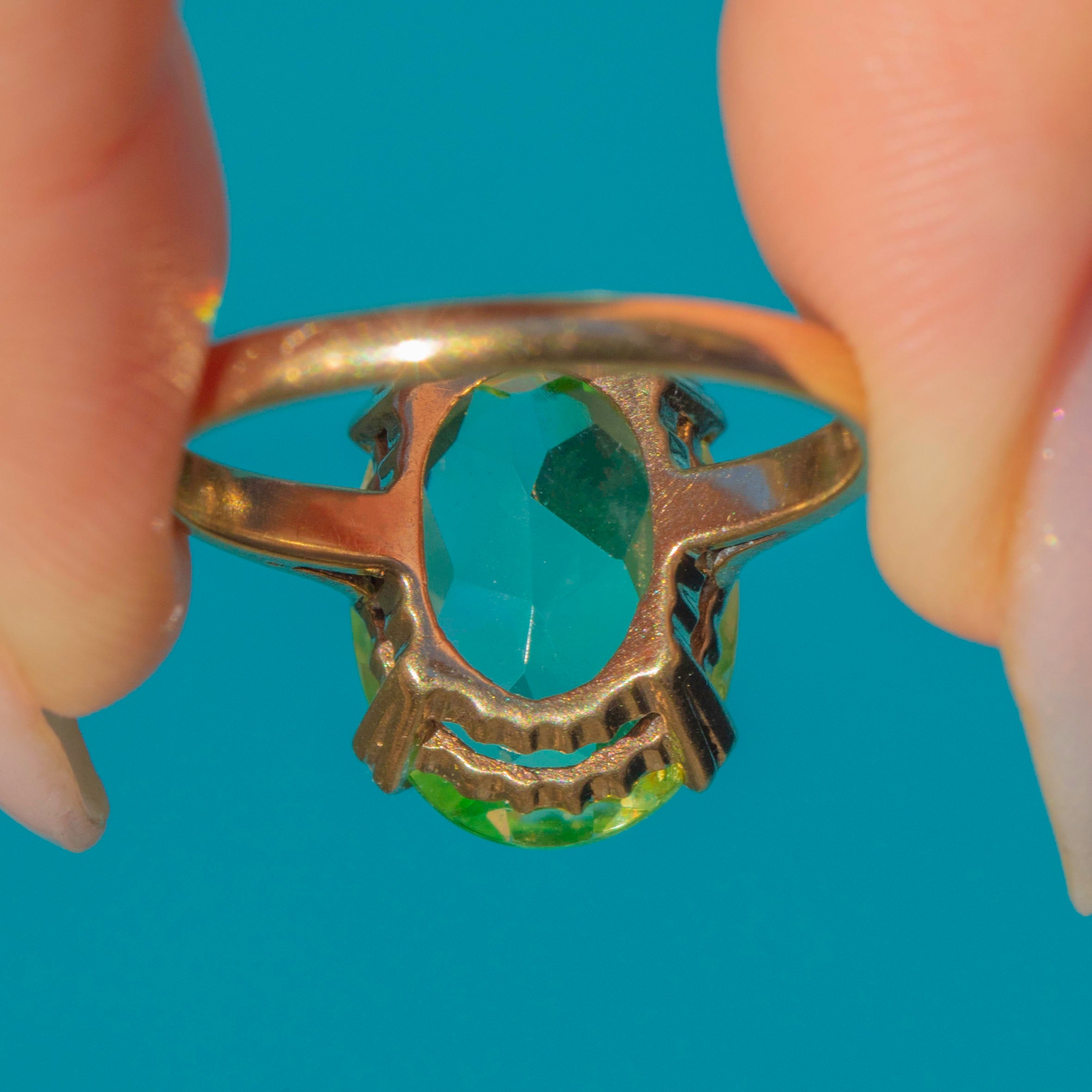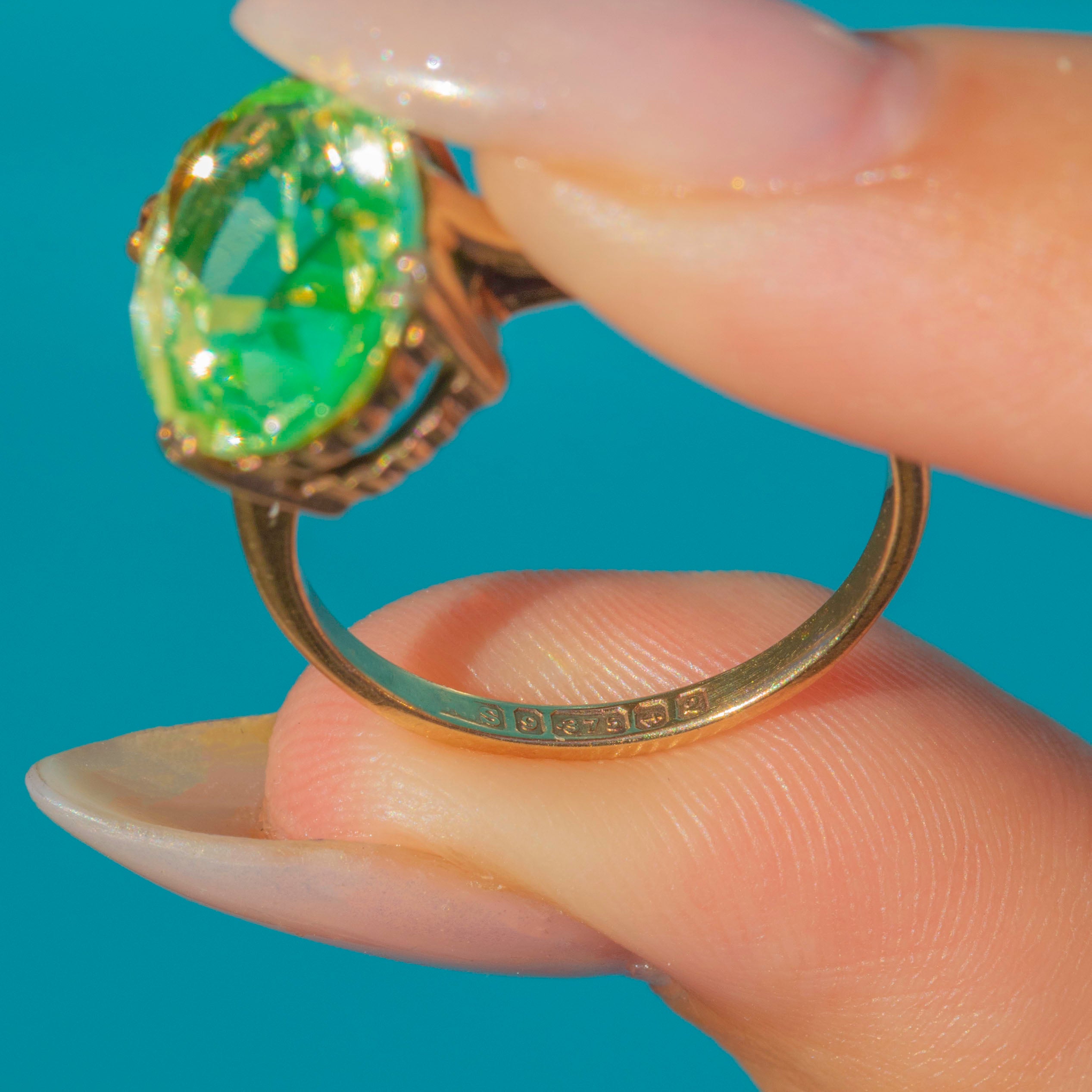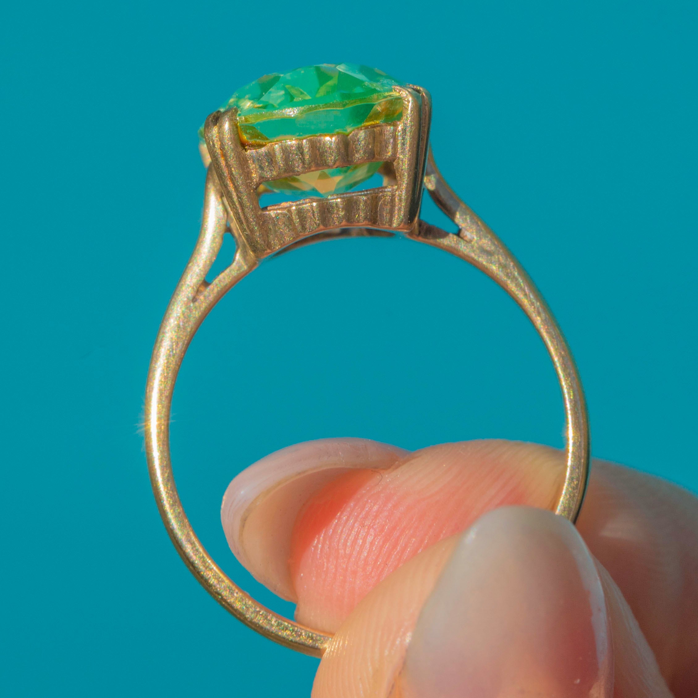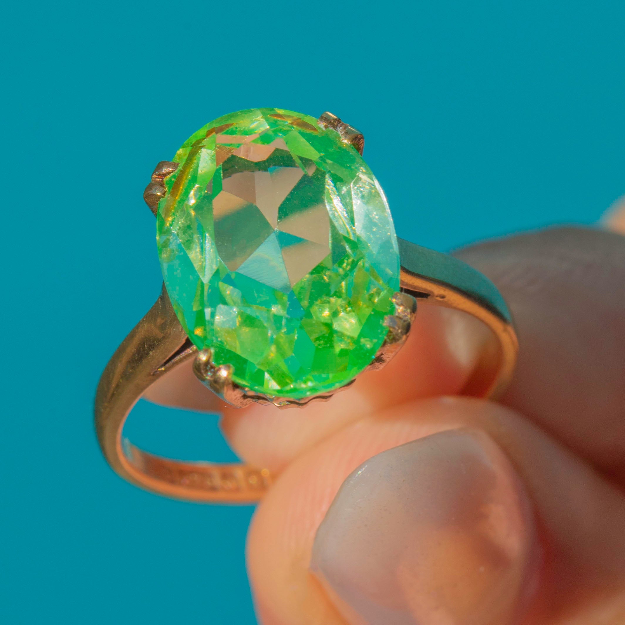 Vintage 9ct Gold Neon Green Synthetic Spinel Ring c.1990