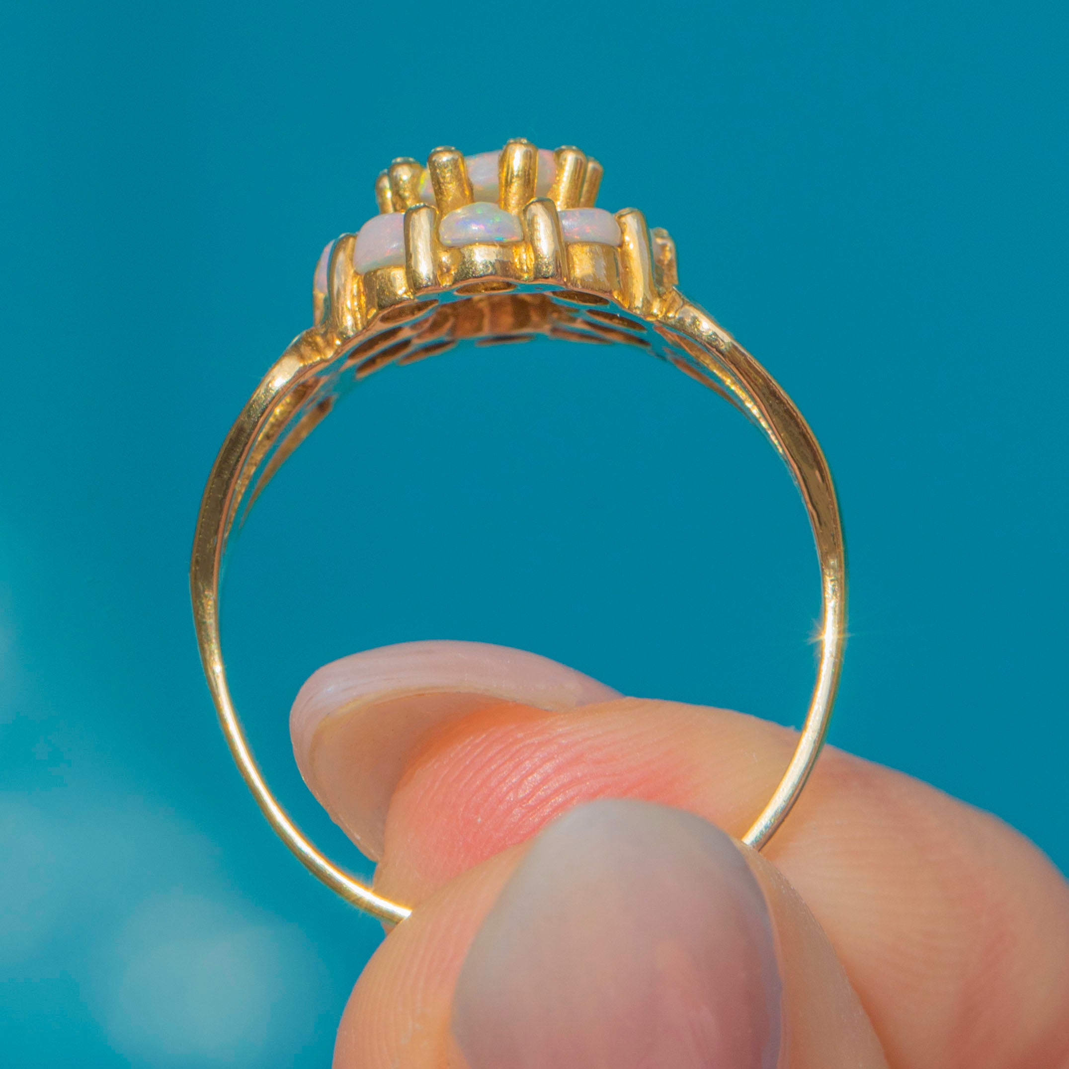 Vintage 9ct Gold Opal Cluster Ring, Petal Shoulders