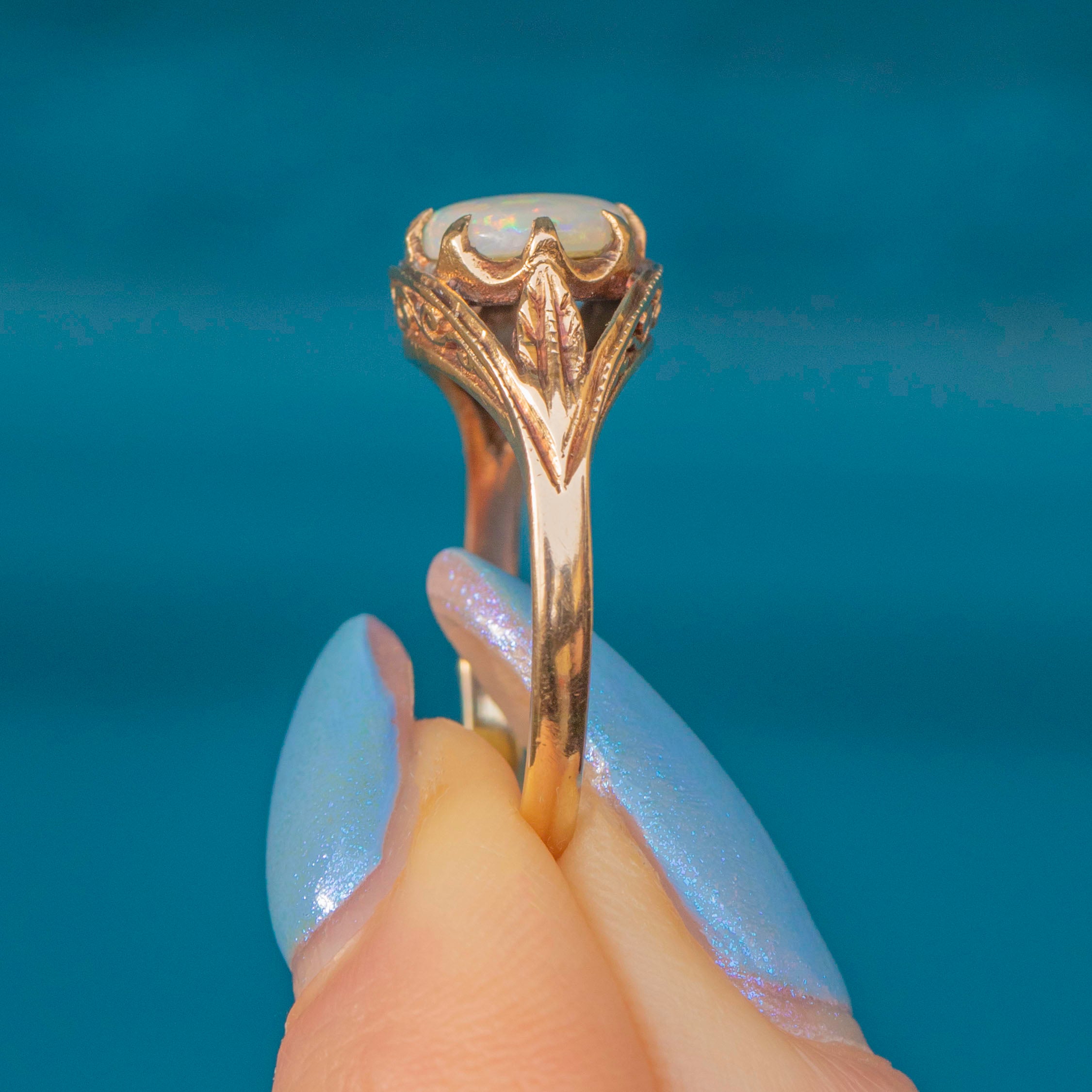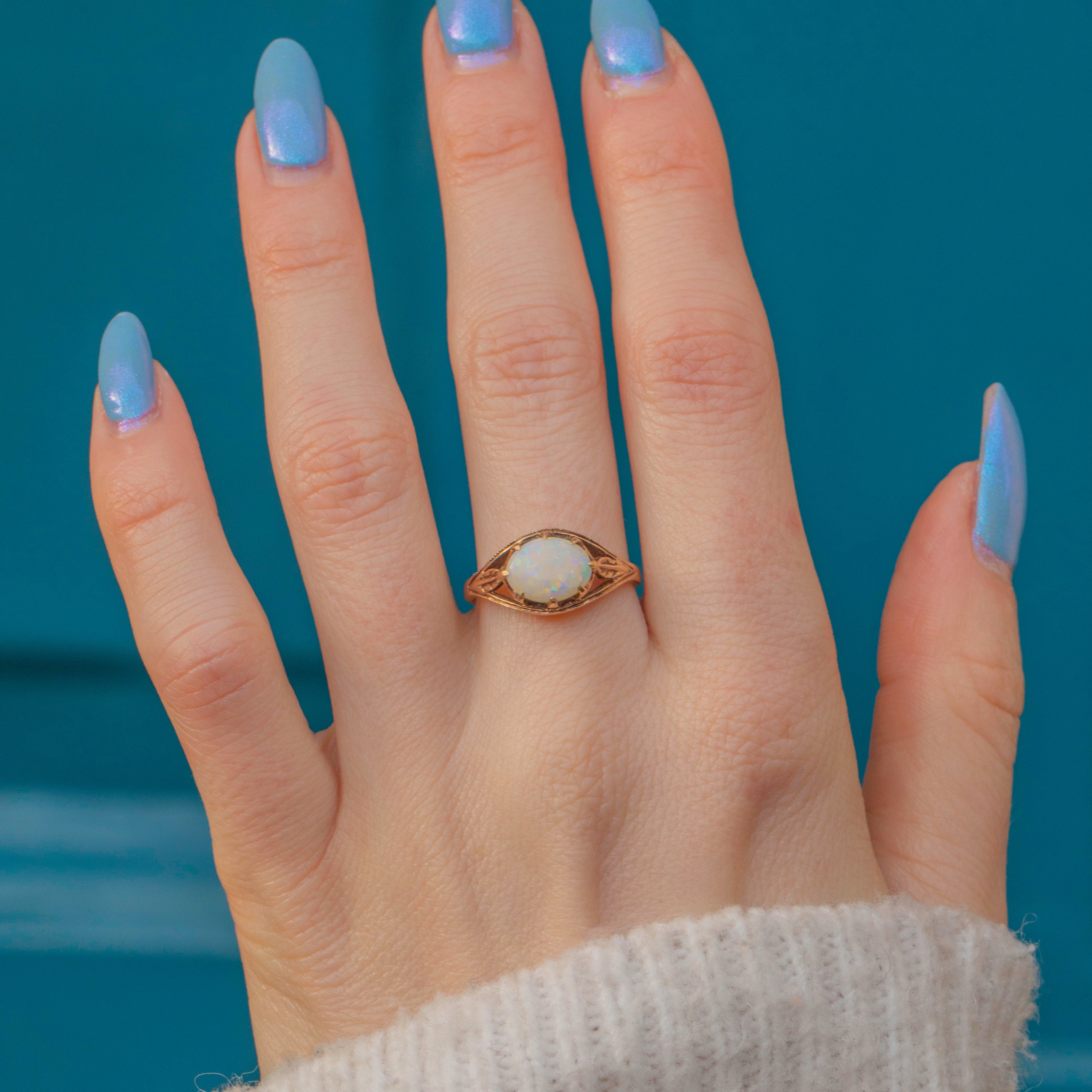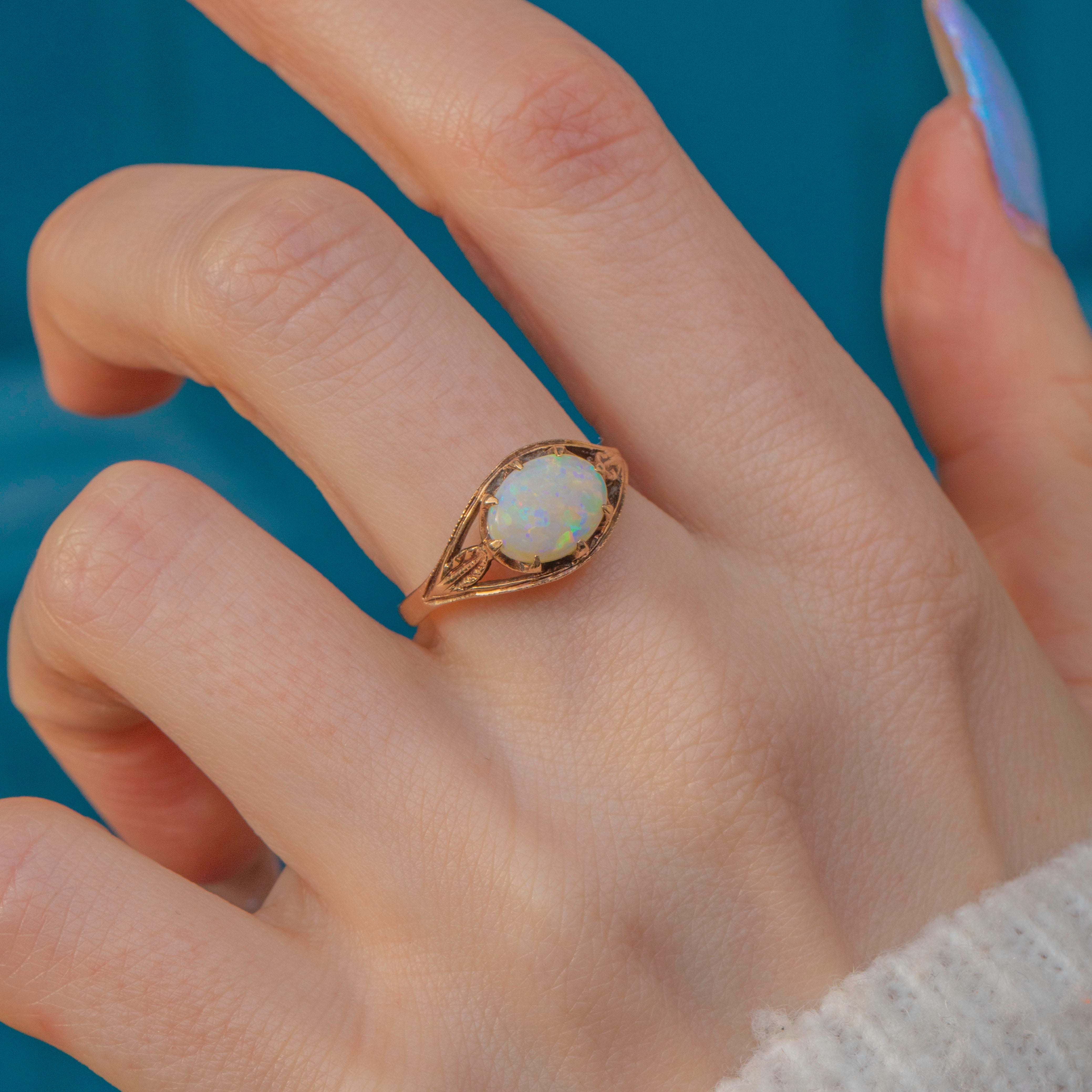 9ct Gold Opal Solitaire Ring 0.45ct, Openwork Shoulders