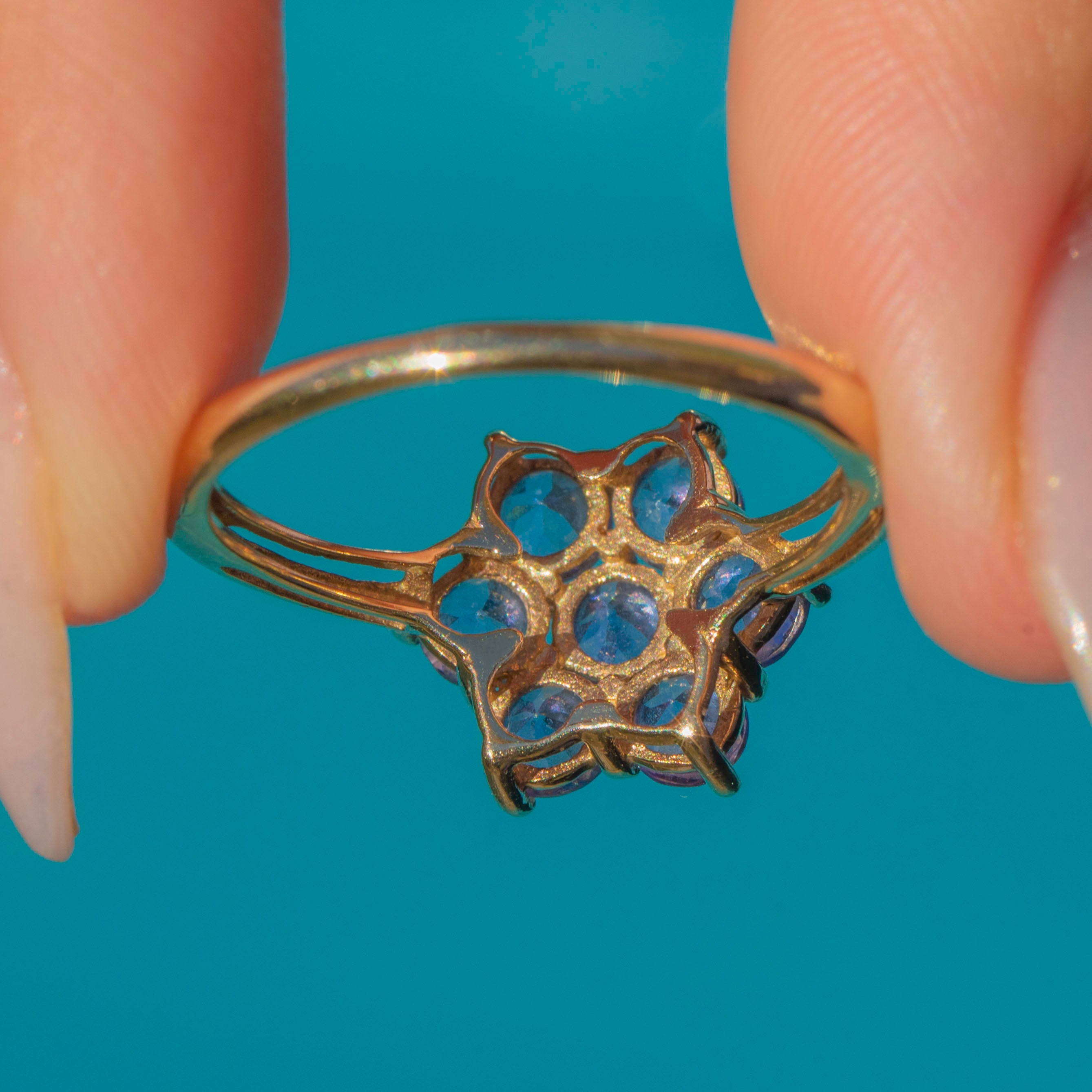 Vintage 9ct Gold Tanzanite Flower Cluster Ring