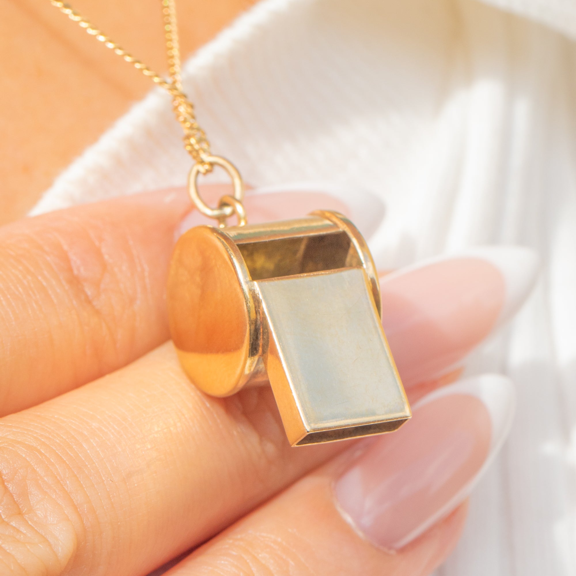 Miniature whistles like this are highly wearable as pendants or as part of a curated charm stack, bringing a touch of fun and character to your everyday jewellery. With its smooth, rounded form and compact proportions, it’s an easy piece to style and a lovely talking point for Vintage Gold lovers.